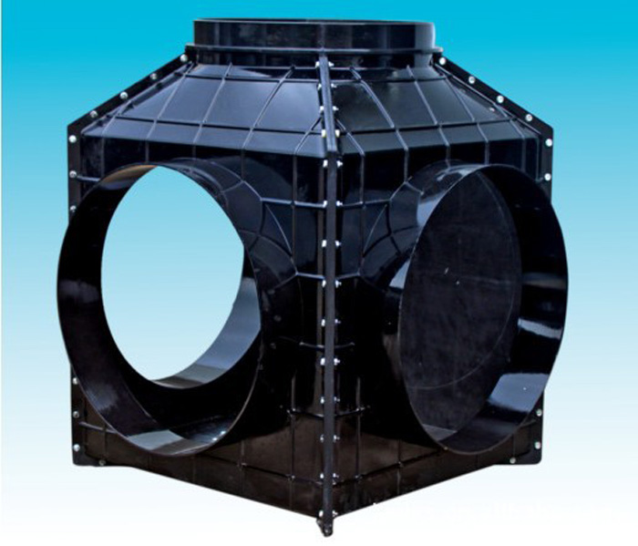 其中关键的井座部分采用一次性注塑成型,以变径接头、可变角接头及密封圈等配件来达到改变管径及角度的连接。检查井配套开发了注塑成型的井盖、井筒 、井座,路面载荷通过井盖、井座作用于检查井周围,避免了路面载荷对检查井的破坏,盖座具有上下浮动的功能,可主动适应路面的高低变化,同时井筒采用专用井筒,可根据现场埋设深度截取相应长度,具有很大的灵活性。井筒、进(出)水管道与井座的连接采用橡胶密封圈柔性连接,可适应小范围的内角度变化,施工方便快捷,密封性能好、有效防止渗漏,环保节能。
